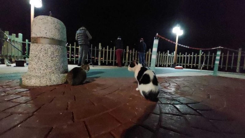 Tekirdağ’ın Süleymanpaşa İlçesinde iskelenin tatlı misafirleri kediler, gece geç saatlere kadar olta başında balık tutmaya çalışan balıkçıları büyük bir sabırlıkla bekliyor. Marmara Denizinden çıkan balıklardan kedilerde kendi payına düşeni alıyor.