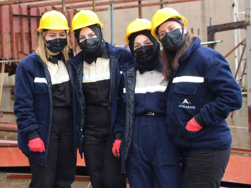 Karadeniz Teknik Üniversitesi (KTÜ) Abdullah Kanca Meslek Yüksek Okulu Gemi İnşaatı Programı’nda öğrenim gören 4 kız öğrenci eğitim aldıkları Sürmene Tersanesi’nde kaynakçı ustalarına adeta taş çıkartıyor.