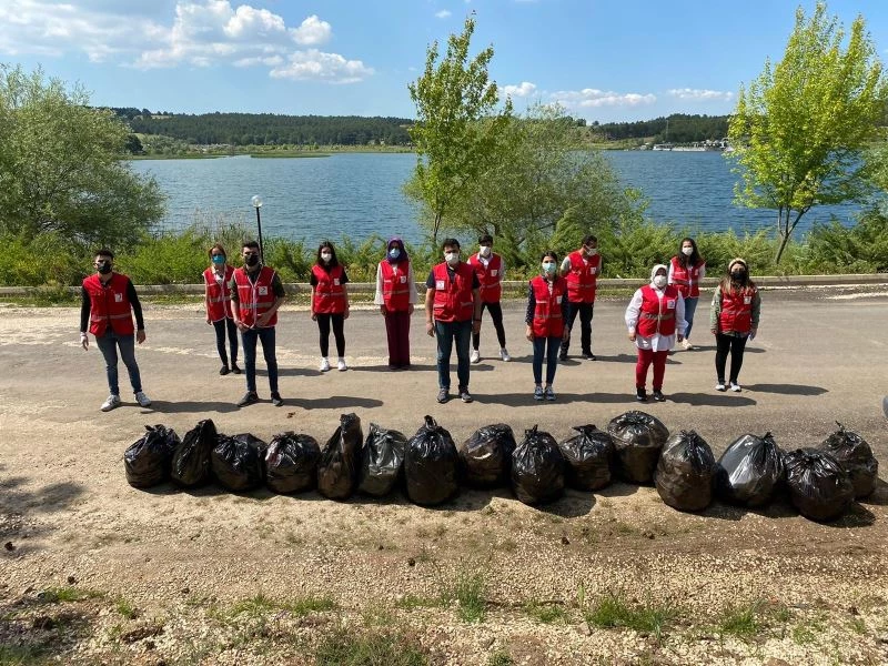 Türk Kızılay Bilecik Şubesine bağlı Genç Kızılay gönüllüleri Pelitözü Gölpark’ta onlarca poşet çöp topladılar