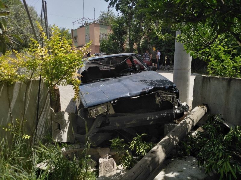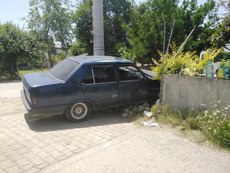 Önüne çıkan araca çarpmamak için ani manevra yaptı, bahçe duvarından içeri girdi
