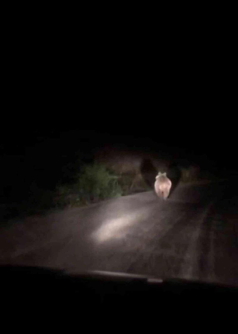 Sivas’ın Gemerek ilçesinde yaşayan iki arkadaş önlerine çıkan ayıyı araçla kovaladı, o anlar cep telefonu kamerasına yansıdı