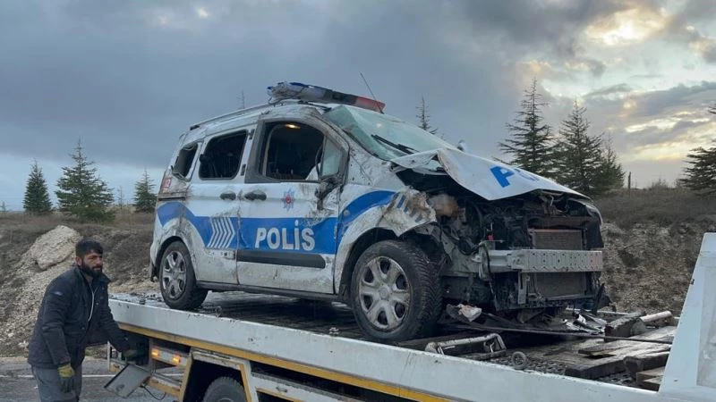 Önüne yabani hayvan çıkan polis aracı takla attı, 2 polis yaralandı