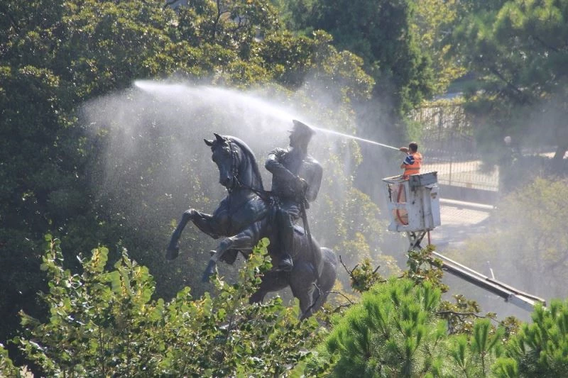 Samsun’da 30 Ağustos Zafer Bayramı öncesi Atatürk Parkı ve Onur Anıtı’nda temizlik çalışması yapıldı.