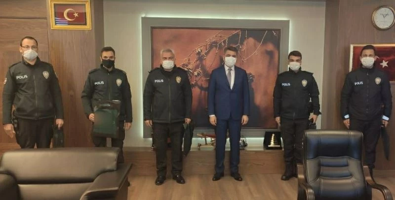 Zeybek, makamında hediyeler verdiği polislere, başarılı çalışmaları nedeniyle kutlayarak, teşekkür etti.