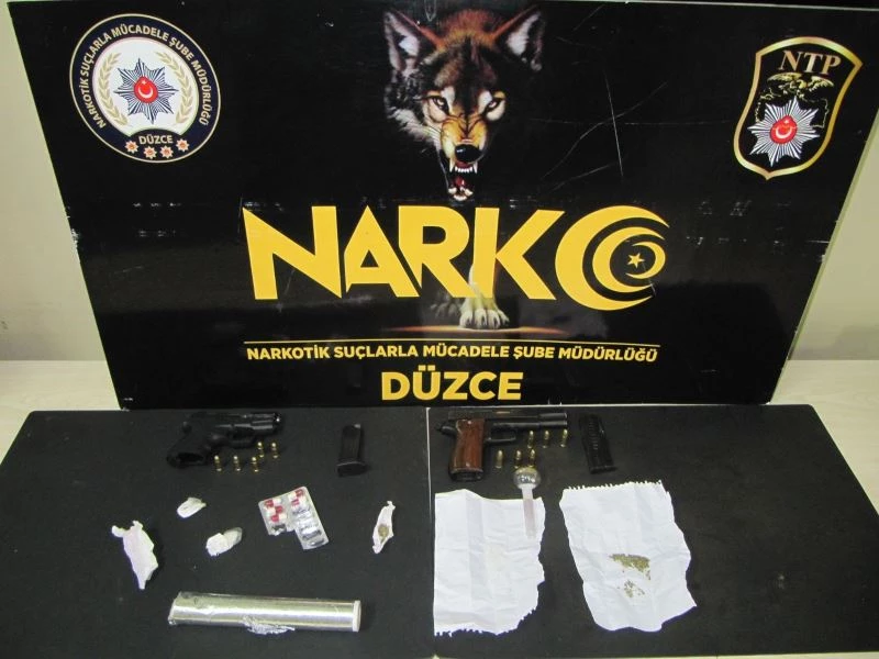 Düzce İl Emniyet Müdürlüğü Narkotik Suçlarla Mücadele ekipleri Düzce Merkeze bağlı Aziziye Maallesi ve Kültür Mahallesi’nde uyuşturucu sattığını belirlediği 1 kişiyi operasyon ile yakaladı. Şahsın üzerinde, ikametinde ve aracında yapılan aramalarda 3 gram Kokain maddesi, 7 gram metamfetamin maddesi, 3 gram sentetik kannabinoid maddesi, 5 adet reçeteye tabi sentetik ecza, 1 adet cam pipo, 2 adet ruhsatsız tabanca ve 11 adet bu tabancalara ait mermi ele geçirildi. İl Emniyet Müdürlüğünde işlemleri tamamlanan şahıs, "Uyuşturucu Madde Ticareti Yapmak" suçundan sevk edildiği adli makamlarca tutuklanarak cezaevine teslim edildi.