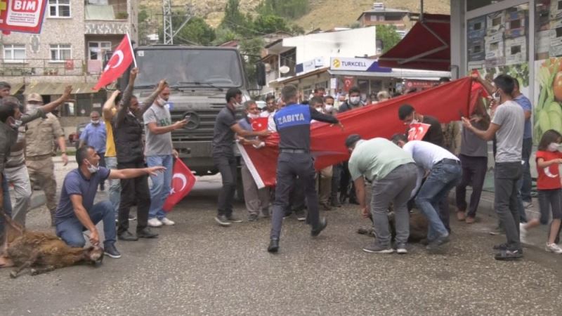 Erzurum’un Şenkaya kırsalında teröre yönelik düzenlenen operasyon sonrası ilçeye dönen jandarma, özel harekat ve korucuları vatandaşlar, kurban keserek karşıladı.