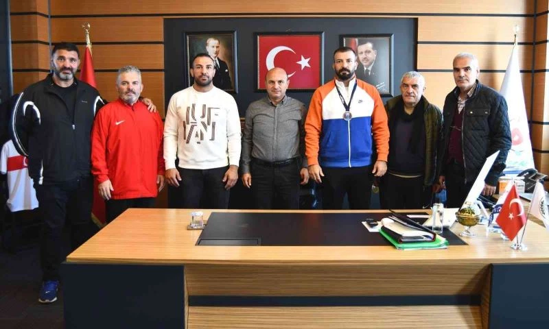Veteranlar Dünya Serbest Güreş Şampiyonasında 100 kilogramda dünya 3. olan Burak Kaya, Altınova Belediye Başkanı Dr. Metin Oral’ı ziyaret etti.