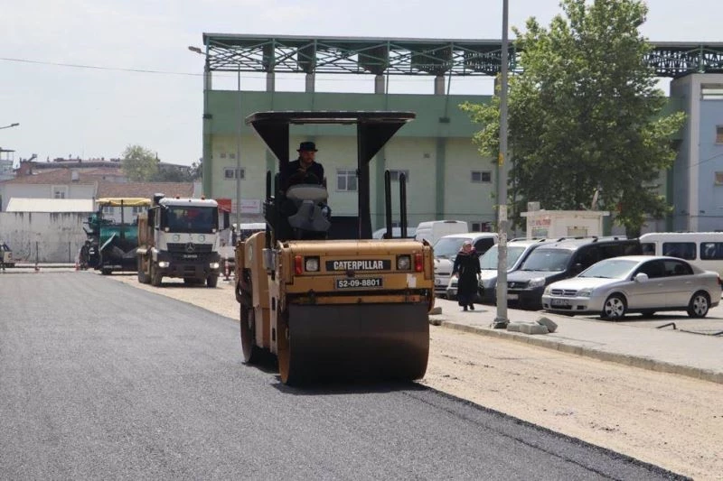 Ordu Büyükşehir Belediyesi, Ünye ilçe merkezinde sıcak asfalt çalışmalarına başladı.