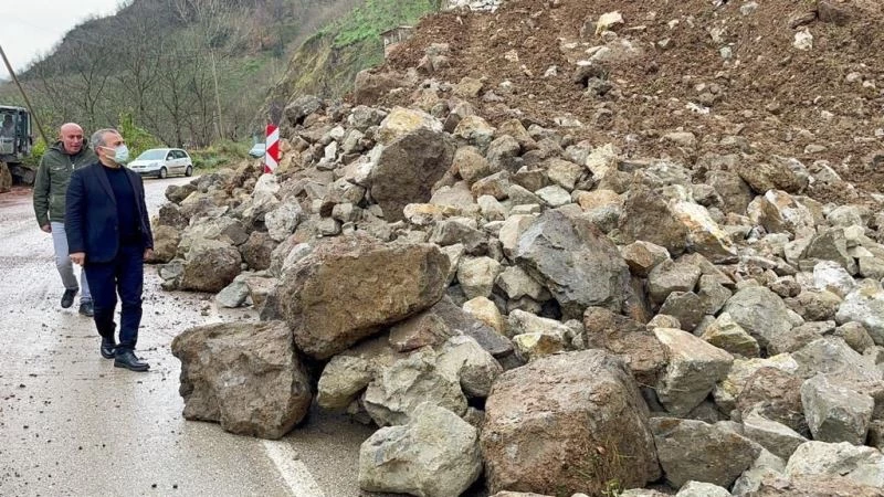 Çatalpınar ve Aybastı ilçe ziyaretleri esnasında, Fatsa-Aybastı Karayolunda meydana gelen göçme ve heyelan bölgesinde de incelemelerde bulunan Vali Tuncay Sonel, Karayolları ekiplerince bölgede yapılan temizlik ve sondaj çalışmalarını görerek, yürütülen çalışmalarla ilgili görevlilerden bilgi aldı.