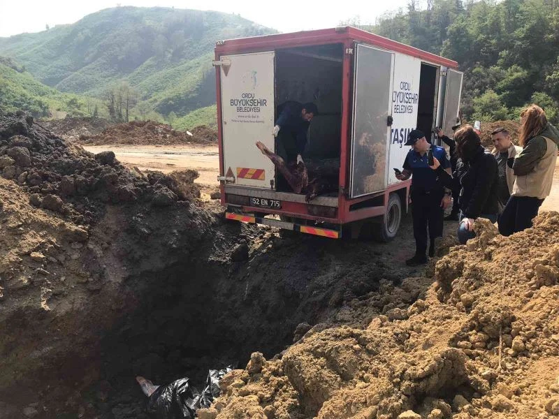 Ordu’da il dışından kaçak girdiği belirlenen sahte mühürlü 2 ton et imha edildi.