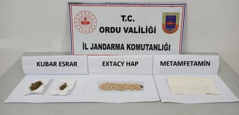 Ordu İl Jandarma Komutanlığı’nca uyuşturucu ile mücadele kapsamında yapılan titiz çalışmalar neticesinde Ünye ilçesinde yapılan operasyon neticesinde biri kadın 3 şüpheli şahsın bulunduğu araçta yapılan aramada 3 gram kubar esrar, 12 gram metamfetamin ve 58 adet extacy hap ele geçirildi.