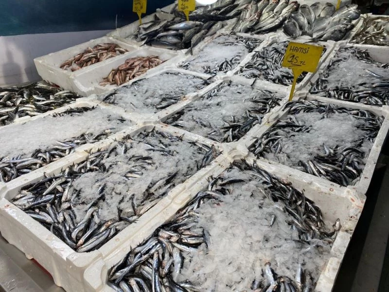 Bilinçsiz avlanmadan dolayı boyutlarında küçülme olan hamsilerde Karadeniz’de av yasağının devam etmesi ile birlikte tezgahlarda yerini az da olsa bulan ’buzhane hamsi’ kilosu 15 TL’den satılıyor.
