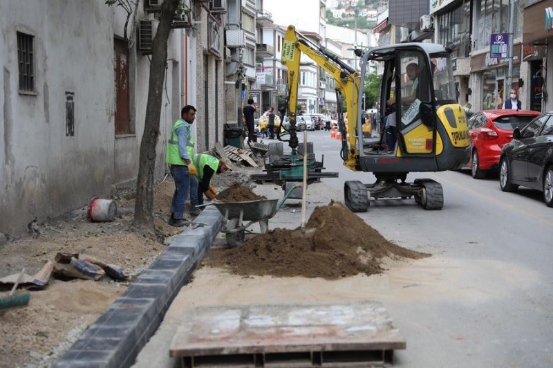 Ordu’nun Altınordu ilçesinde başlatılan kaldırım ve aydınlatma direklerini yenileme çalışmaları devam ediyor.