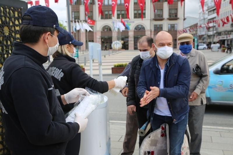 Ordu’da, ibadete açılan camilere giden vatandaşlara, seccade, maske ve dezenfektan dağıtıldı.