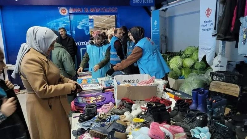 Ordu İl Müftülüğü öncülüğünde hayırsever vatandaşların destekleriyle Ordu’ya gelen afetzedelerin giysi, gıda ve temizlik ihtiyaçlarını karşılamaya yönelik iyilik çarşısını hizmete sundu. Ordu İl Müftülüğü yerleşkesi içerisinde depremzede vatandaşların ihtiyaçlarını karşılamaya yönelik açılan çarşıda kadın ve erkek, çocuk kıyafetleri, ayakkabı, çocuk bezi, bebek maması, battaniye, hijyen maddeleri gıda, temizlik ürünleri, sebze ve meyve reyonları başta olmak üzere temel ihtiyaç malzemeleri hazır bulunuyor.