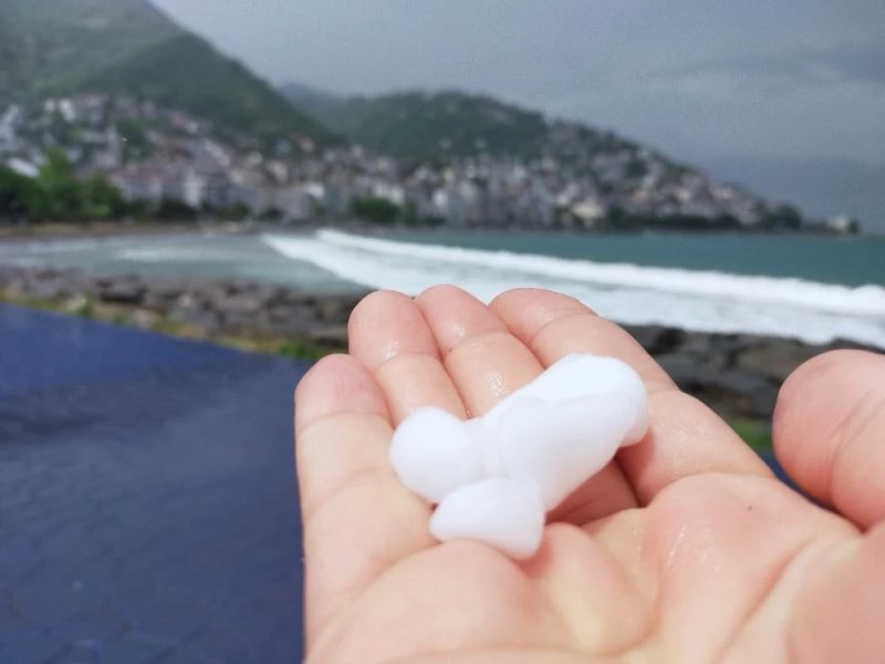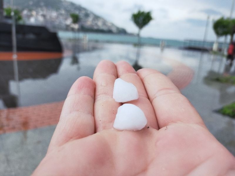 Ordu’nun kent merkezinde etkili olan sağanak yağmurun ardından dolu yağışı görüldü.