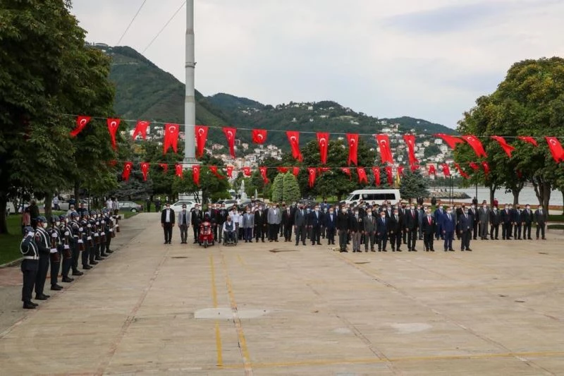 Valilik tarafından hazırlanan kutlama programı çerçevesinde ilk tören, Şarkiye Mahallesi’ndeki Atatürk Anıtı’nda yapıldı. Vali Tuncay Sonel, tören öncesi gazilerle yakından ilgilenerek bir süre sohbette bulundu hal ve hatırlarını sordu. Törende Vali Tuncay Sonel, Büyükşehir Belediye Başkan Vekili Celal Tezcan, Türkiye Muharip Gaziler Derneği Ordu Şube Başkanı Mehmet Ali Gümüşkaya, Türkiye Harp Malulü Gaziler Şehit Dul ve Yetimleri Derneği Ordu Şube Başkanı Nurettin Korkmaz, Polis Şehitleri ve Malul Gazileri Yardımlaşma Derneği Başkanı Şenel Şahin tarafından Atatürk Anıtı’na çelenk koyuldu. Ardından ulu önder Mustafa Kemal Atatürk ve ebediyete intikal eden şehit ve gazilerin anısına saygı duruşunda bulunuldu ve İstiklal Marşı okundu.