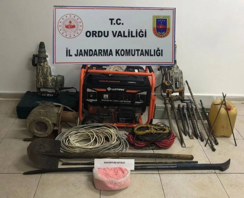 Ordu İl Jandarma Komutanlığınca yapılan titiz çalışmalar neticesinde İkizce ilçesinde yapılan operasyonda izinsiz kaçak kazı yapan 3 şüpheli şahıs suçüstü yakalandı. Şahıslarla birlikte olayda kullanılan 1 adet beton kırıcı, 1 adet jeneratör, 1 adet karot makinesi, 1 adet hilti, 2 kg. amonyum nitrat ve muhtelif kazı malzemeleri ele geçirildi.