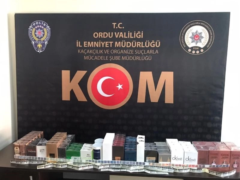 Ordu Emniyet Müdürlüğüne bağlı Kaçakçılık ve Organize Suçlarla Mücadele Şube Müdürlüğü tarafından 5-11 Ekim tarihleri arasında yapılan denetim ve kontrollerde Altınordu ilçesinde yol denetimleri sırasında durdurulan bir araç içerisinde arama yapıldı. Yapılan aramada, muhtelif markalarda tahmini değeri 45 bin lira olan 70 adet gümrük kaçağı parfüm, 136 adet adet sahte bandrol ve etiket ele geçirildi. Olayla ilgili olarak gözaltına alına 2 kişi hakkında adli işlem yapıldı.