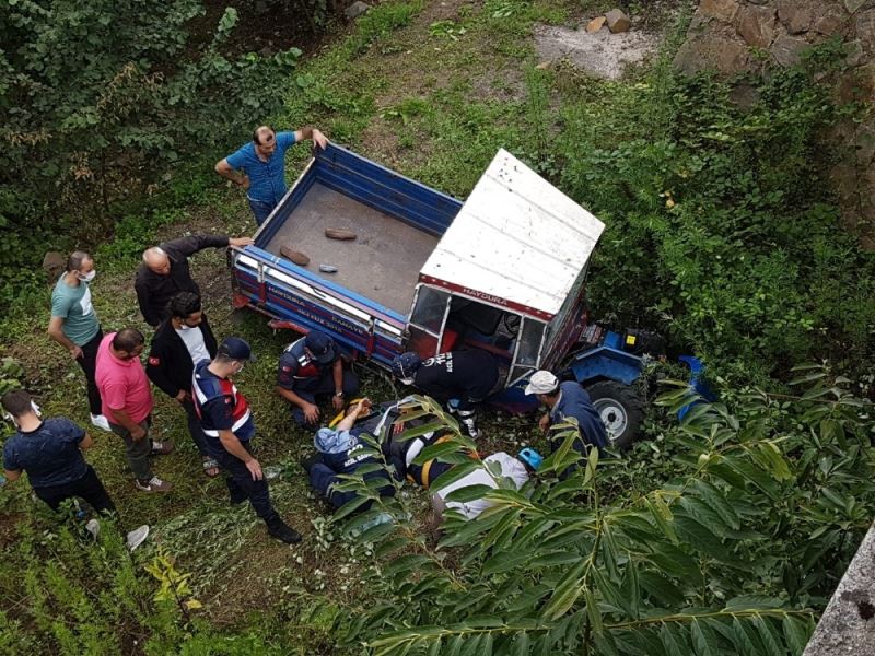 Kaza, ilçeye bağlı İslamdağ Mahallesi’nde meydana geldi. Edinilen bilgilere göre, bölgede patpat olarak adlandırılan Hüseyin E. idaresindeki tarım aracı, sürücüsünün kontrolünden çıkarak 20 metrelik köprüden aşağıya yuvarlandı. Kazada sürücü ile birlikte Şule ve Eray E. yaralandı. Durumun bildirilmesi üzerine olay yerine gelen 112 Acil Servis ekipleri, yaralıları bulundukları yerden alarak, Fatsa Devlet Hastanesine kaldırdı.