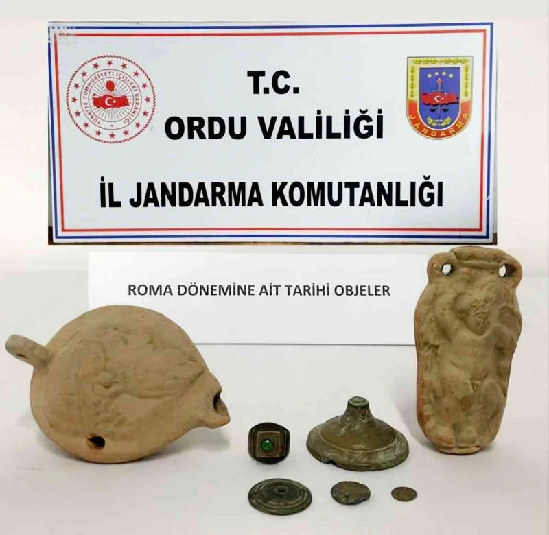 Ordu İl Jandarma Komutanlığınca kaçakçılık ile mücadele kapsamında yapılan istihbari çalışmalar sonucu Ünye ilçesinde yapılan operasyonda 1 şüpheli şahsın ev ve eklentisinde yapılan aramalarda Roma dönemine ait olduğu değerlendirilen 1 adet insan figürlü heykel, 1 adet insan figürlü lamba, 1 adet yüzük, 3 adet sikke ve 1 adet metal obje ele geçirildi.