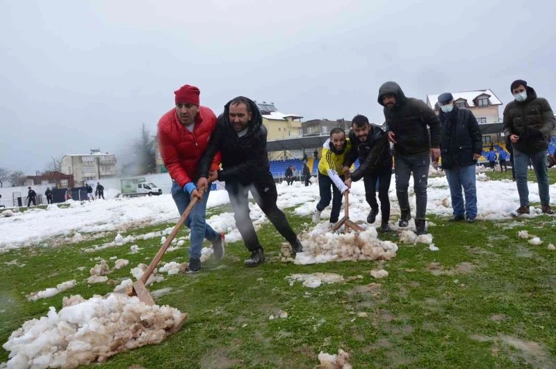 Ordu’da sahaya inen taraftarlar kar temizliği yaptı
