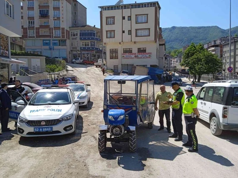 Ordu’nun Kumru ilçesinde jandarma ve polis ekipleri tarafından tarım araçlarına yönelik denetim gerçekleştirildi.