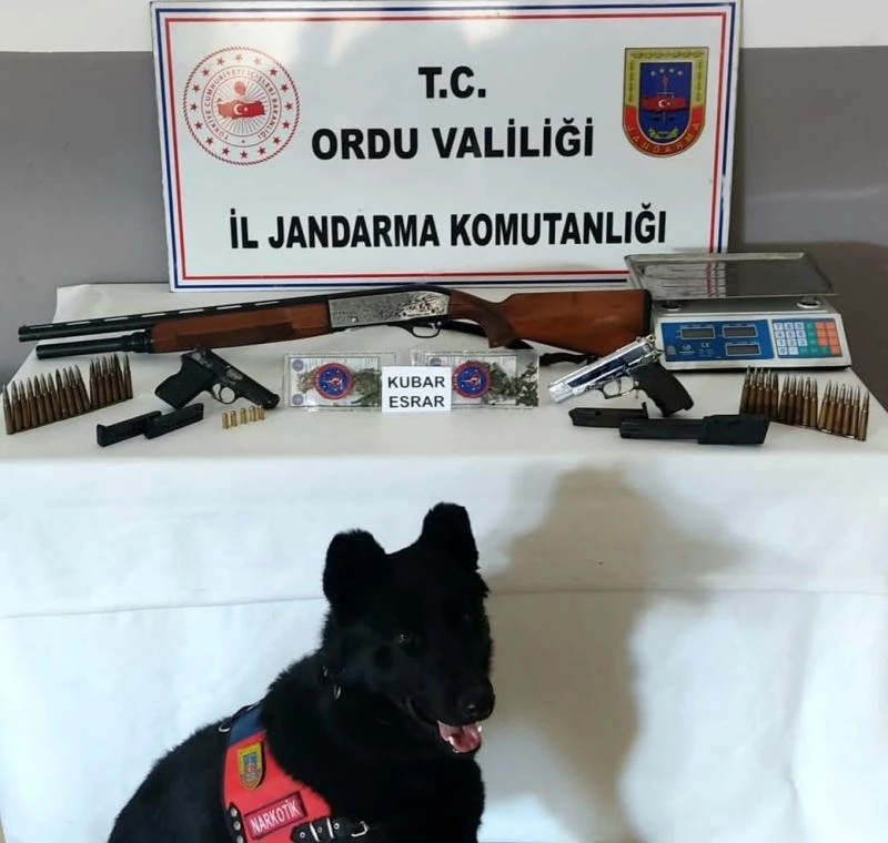 Ordu İl Jandarma Komutanlığınca uyuşturucu ile mücadele kapsamında yapılan çalışmalar sonucu Ünye ilçesinde yapılan operasyonda 10 gram kubar esrar, 1 adet ruhsatsız tabanca, 1 adet kurusıkı tabanca, 1 adet ruhsatsız av tüfeği, 5 adet tabanca fişeği, 33 adet mavzer fişeği, 1 gram kenevir tohumu ve 1 adet elektronik terazi ele geçirildi.