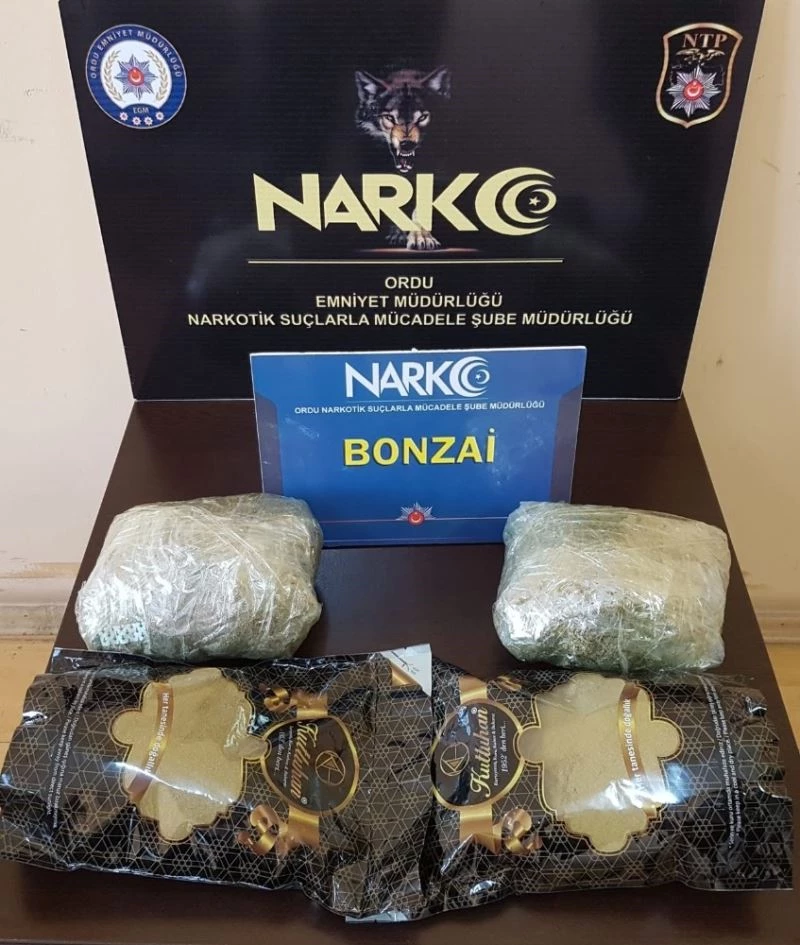 Ordu Emniyet Müdürlüğü Narkotik Suçlarla Mücadele Şube Müdürlüğünce uyuşturucu ile mücadele kapsamında yapılan çalışmalarda Altınordu ilçesi Güzelyalı Mahallesi uygulama noktasında yapılan kontrolde bir otobüs içerisinde arama yapıldı. Arama sırasında 2 kişinin üzerinde 2 kilo 900 gram bonzai maddesi ele geçirildi.