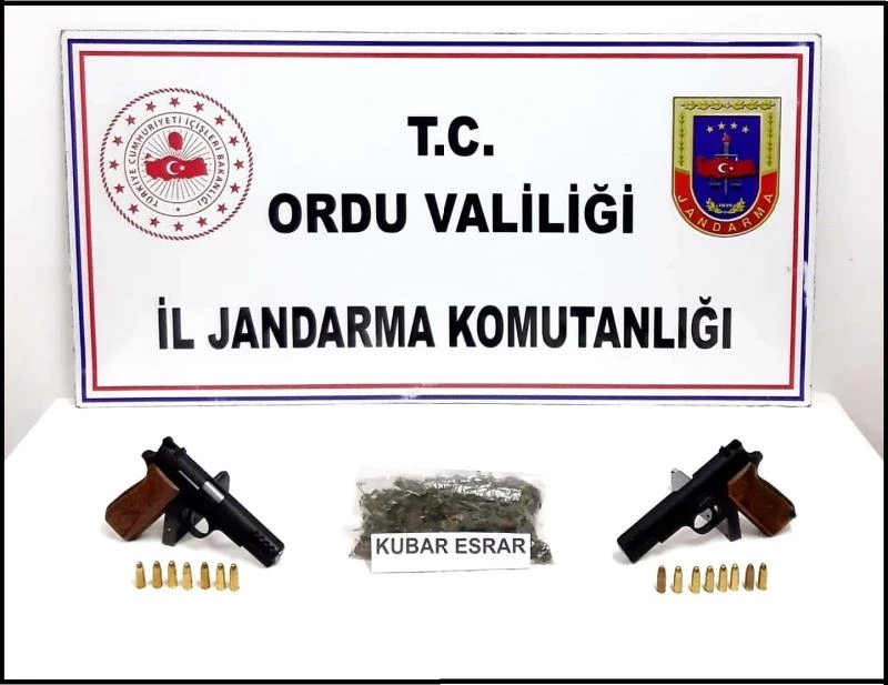 Ordu İl Jandarma Komutanlığı tarafından uyuşturucu madde ile mücadele kapsamında yapılan çalışmalar sonucu Gülyalı ilçesinde yapılan bir operasyonda 150 gram kubar esrar maddesi, 2 adet ruhsatsız tabanca ve 15 adet tabanca fişeği ele geçirildi.