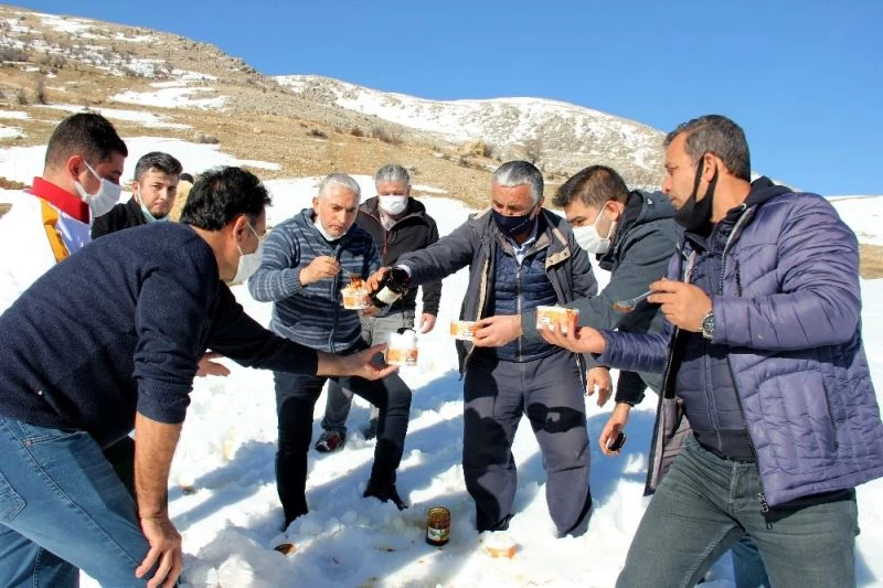 Adıyaman İnternet Yayıncıları ve Gazeteciler Derneği Başkanı Metin Harıkçı ise konuşmasında, “Harika bir doğal güzellik var. Buranın yöresel, katıksız, orijinal, organik şekilde yapılmış olan pekmezini kar ile karıştırarak karlambaç ikram ettiler” diye konuştu.