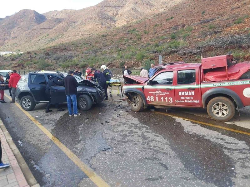 Kaza, Marmaris ilçesi İçmeler Mahallesi’nde saat 14.30 sıralarında meydana geldi. Edinilen bilgiye göre M.B. idaresindeki Orman İşletme Müdürlüğü’ne ait araç, Barbaros Caddesi üzerinde seyrederken karşı şeritten gelen İ.B. idaresindeki otomobil ile çarpıştı. Çarpışmanın etkisi ile kazada 3 kişi yaralandı. Kazayı gören vatandaşlar durumu 112 Acil Çağrı Merkezi’ne bildirdi. İhbar üzerine bölgeye polis, itfaiye ve sağlık ekipleri sevk edildi. Kısa sürede bölgeye gelen itfaiye ekipleri otomobil içerisinde sıkışan sürücü İ.B.’yi kurtararak sağlık ekiplerine teslim etti.