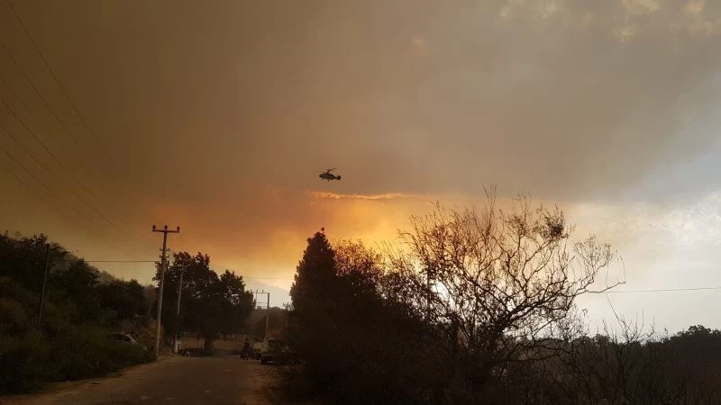 Aydın-Muğla sınırındaki Akçaova Mahallesi’nde bulunan ormanlık alanda başlayan ve Muğla’nın Yatağan ilçesi Hisarardı Mahallesi’ne doğru ilerleyen yangını kontrol altına almak için çalışmalar sürüyor. Aydın Büyükşehir Belediyesi İtfaiye Daire Başkanlığı ve Muğla Orman Bölge Müdürlüğü ekiplerinin yoğun çaba sarf ettiği yangına, karadan çok sayıda arazöz, iş makinesi, personel müdahale ederken havada da yurt dışından gelen gece görüşlü yangın söndürme helikopterleri görev yapıyor. Alevlerin geceyi gündüze çevirdiği yangında, tedbir amaçlı bölgeye en yakın mahalle olan Kabalar Mahallesi tahliye edildi.