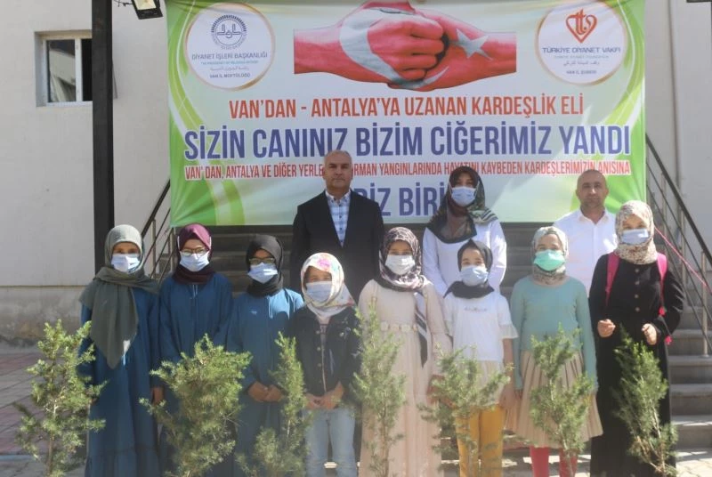 Van İl Müftülüğü, ülke genelinde yaklaşık bir haftadır süren orman yangınlarında şehit olan vatandaşların anısına fidan bağışında bulundu.
