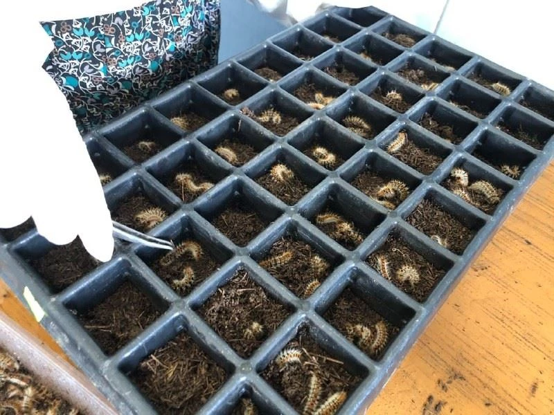 Rutubetin açığa çıkarılması için toprağın hafif kazılarak, içerisine birer tane böcek bırakıldığına değinen Bölge Müdürü Refik Ulusoy, “Daha sonra üzerini örteriz . Onlar orada pufuya dönüşürler, sonra böcek olarak çıkarlar ve kış müddetini de toprağın altında cam kese böceğinin yine pufu halindeki larvaları yiyerek beslenirler. Bir dahaki sene şubat ayı sonu mart ayı başına kadar toprakta kalırlar. Bu böcekler 3-4 yıl yaşayabilmekteler. Her gün 10 tane böcek yiyorlar. Aşağı yukarı yılda bin civarında çam kese böceğini yemiş olurlar. Çam kese böceği bulamadıkları halde kendi kendilerini yerler” dedi.