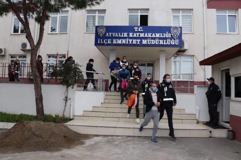 Sahte plakalı panelvan ile ele geçirilen ve 7 ayrı suçtan aranması bulunan cezaevi firarisi M.E.S’in yanı sıra çeşitli suçlardan sabıkalı F.E ve E.C isimli organizatörler gözaltına alan polis, yaptıkları sorgulamalarda aynı olayla ilgili 6 kişinin daha olduğunu belirledi. Ayvalık Polisi, İzmir’den gelen 3 organizatörün Ayvalık’ta bağlantıları olan 6 organizatör zanlılarını da tek tek gerçekleştirdiği operasyonlarla gözaltına aldı. Göçmenleri bindirecekleri lastik bot da yapılan çalışma ile Ortunç bölgesinde deniz kenarında ele geçirildi.