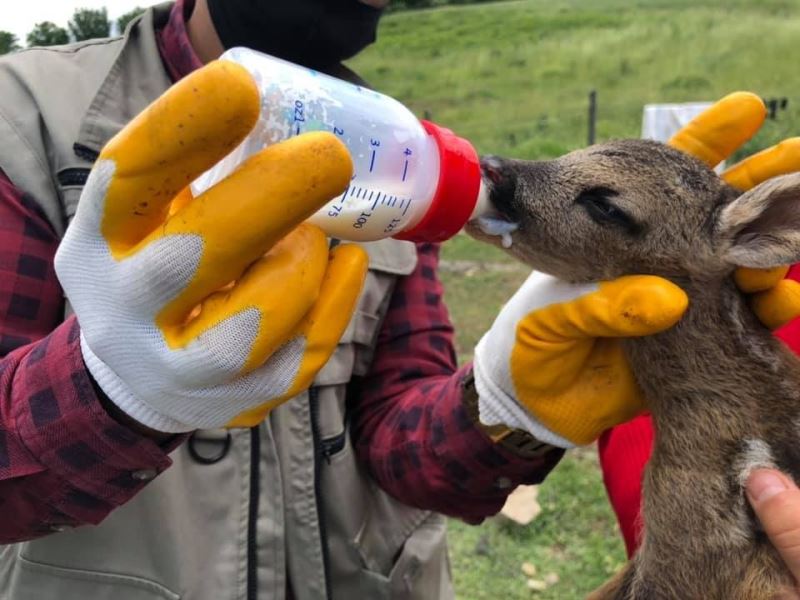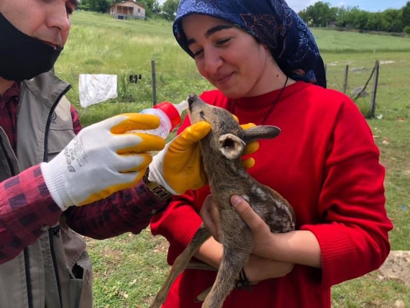 Ormanda annesini kaybeden yavru karaca keçi besiciliği yapan aileye teslim edildi