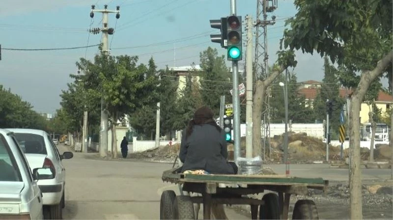 Şanlıurfa’nın Siverek ilçesinde at arabasının kırmızı ışıkta bekleme anı kameralara yansıdı.