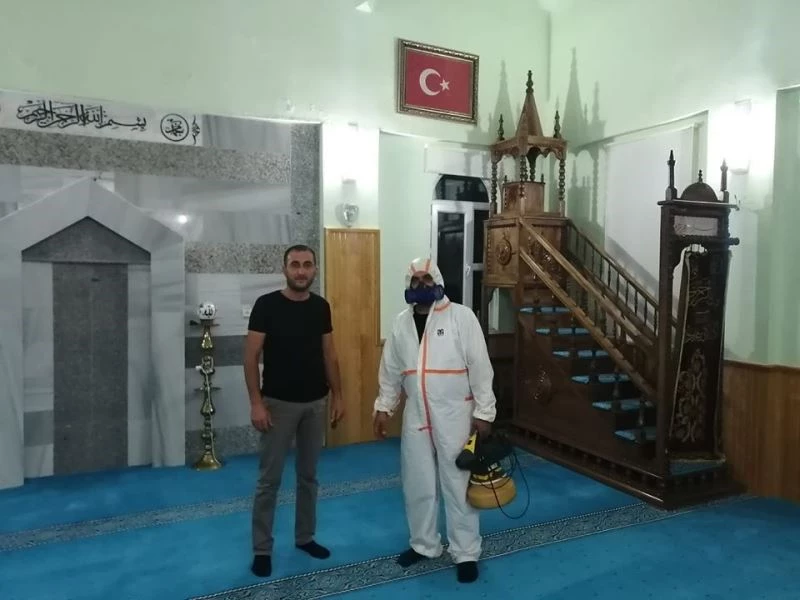 Örnek muhtar camileri kendi imkanları ile dezenfekte etti