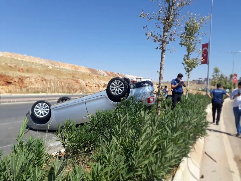 Gaziantep’te sürücüsünün direksiyon hakimiyetini kaybettiği otomobil orta refüje çarparak takla attı. Kazada iki kişi yaralandı.