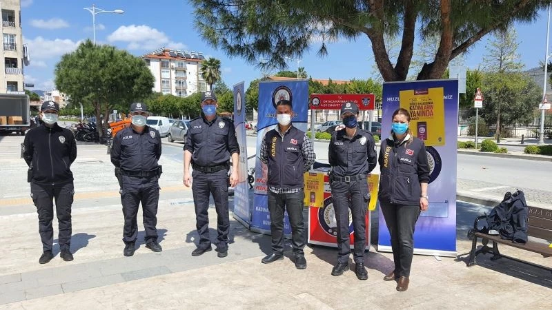 Muğla’nın Ortaca ilçesinde polis ekiplerince KADES uygulaması tanıtıldı, vatandaşlara maske dağıtıldı.