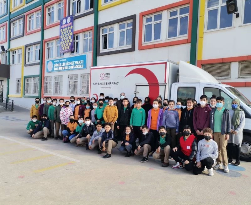 Gaziantep’te ortaokul öğrencileri düzenleri kampanya ile kan bağışının önemine dikkat çekti.