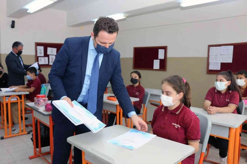 Ardından İl Müdürü Çay, 8. sınıf öğrencilerine, Ölçme, Değerlendirme ve Sınav Hizmetleri Genel Müdürlüğünce dijital ortamda hazırlanan “Sınavla Öğrenci Alacak Ortaöğretim Kurumlarına İlişkin Merkezi Sınav’a Yönelik Ekim Ayı Örnek Soru Fasiküllerinin” dağıtımını gerçekleştirdi.