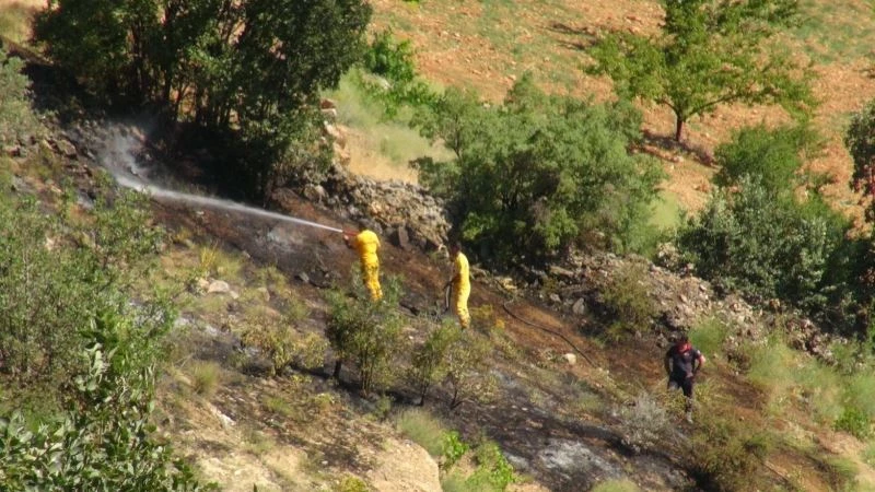 Malatya’nın Doğanşehir ilçesinde yaşanan örtü yangınında badem fidanları zarar gördü.