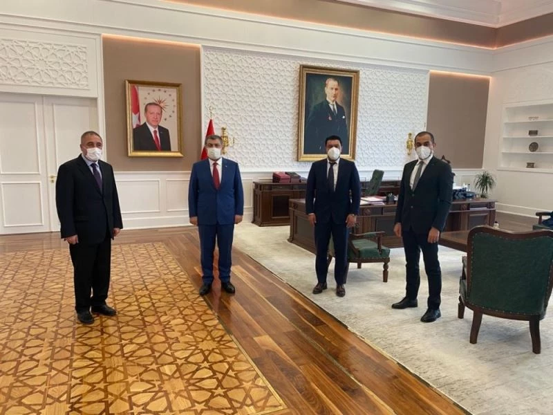 Başkan Şimşek, Yönetim Kurulu Üyesi Özgür Özdağlı ve Bölge Müdürü M. Özer Özcan daha sonra Sağlık Bakanı Dr. Fahrettin Koca’yı makamında ziyaret etti. Gaziantep Organize Sanayi Bölgesinde faaliyet gösteren sanayi tesislerinin pandemi sürecinde çok başarılı bir sınav verdiğine dikkat çeken Başkan Şimşek, “Bu süreçte Sağlık Bakanlığımızın çok büyük destek ve ilgisini gördük. Katkısı bulunan herkese teşekkür ediyoruz” şeklinde açıklamada bulundu.