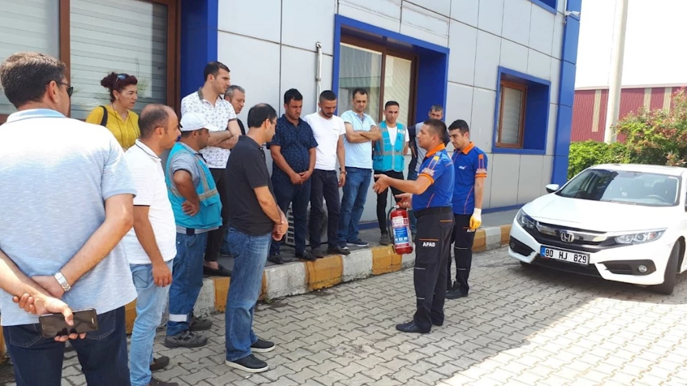 Osmaniye İl Afet ve Acil Durum Müdürlüğü (AFAD) personelleri tarafından, Organize Sanayi Bölge Müdürlüğü çalışanlarına "Afete Hazır İşyeri Projesi" kapsamında teorik ve uygulamalı eğitim verildi. Katılımcılara, işyerlerinde oluşabilecek risklerle mücadele etmek amacıyla işyeri çalışanlarına yönelik gerçekleştirilen ve afetler, deprem, Kimyasal, Biyolojik, Radyolojik ve Nükleer (KBRN), alarm ve ikaz sistemleri ,sivil savunma ekiplerinin kurulumu, düğümler ve bağlar, yaralı taşıma usulleri, sedye bağlama, sedye ile yaralı taşıma usulleri ile yangın söndürme konuları anlatıldı. Bu kapsamda, OSB Bölge Müdürlüğü çalışanlarına, diğer işyerlerinde olduğu gibi olası bir afet ve acil durum öncesi alınması gereken tedbirler ve afet ve acil durum sırası ve sonrasında yapılması gerekenler hususunda bilgilendirme ve bilinçlendirme çalışması yapıldığı kaydedildi.