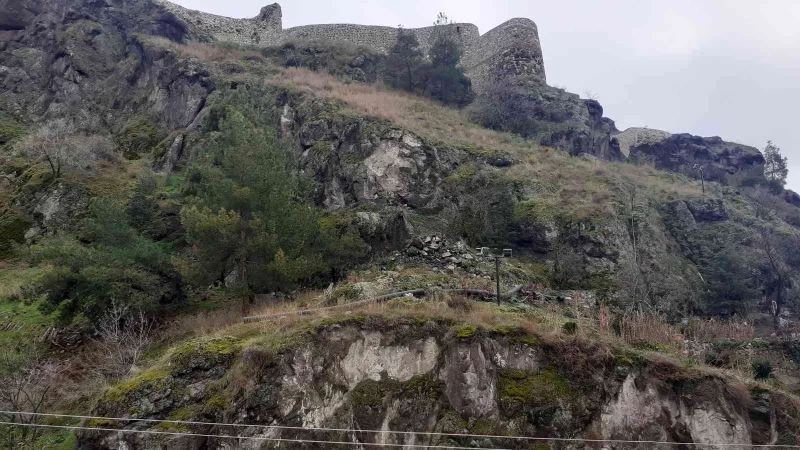 Osmancık Kalesi’nden düşen kaya parçaları korkuttu
