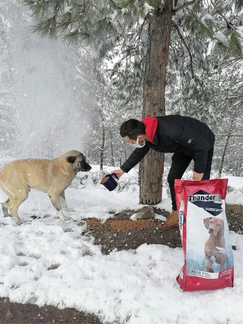Bilecik’in Osmaneli Belediyesi ilçede kar yağışı ve soğuk hava nedeniyle beslenme zorluğu yaşayan sokak hayvanları için doğaya et ve mama bıraktı.