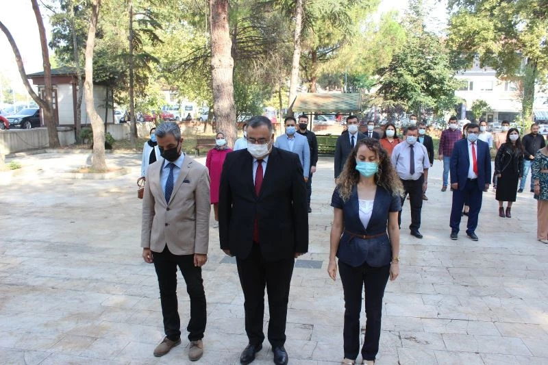 Hükümet Konağı yanında düzenlenen törende ilk olarak İlçe Milli Eğitim Müdürü Erhan Döş tarafından Atatürk anıtına çelenk bırakıldı. Pandemi tedbirleri kapsamında düzenlenen çelenk sunma programına İlçe Milli Eğitim Müdürü Erhan Döş, Şube Müdürü Murat Ersin Korkut ile okul müdürleri ve öğretmenler katıldı.