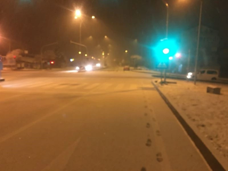 Bilecik’in Osmaneli İlçesinde akşam saatlerinde başlayan kar yağışı etkili oldu.